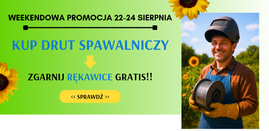 W dniach 22–24 sierpnia przy zakupie drutu spawalniczego w naszym Sklepie Internetowym – do paczki otrzymasz gratis parę profesjonalnych rękawic spawalniczych!
